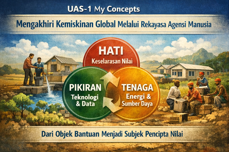 Saya memandang kemiskinan sebagai krisis koordinasi global. Individu miskin tidak kekurangan potensi, mereka terputus dari sistem yang memungkinkan potensi itu bernilai. Kemiskinan global bukan sekadar masalah kelangkaan sumber daya, melainkan kegagalan sistemik dalam menyelaraskan kecerdasan kolektif kita. Oleh karena itu, Mahakarya Rekayasa untuk kemiskinan harus membangun ekosistem yang menyatukan Hati, Pikiran, dan Tenaga dalam satu arsitektur pemberdayaan. Untuk mewujudkan SDG 1 (Tanpa Kemiskinan) sebagai sebuah “Mahakarya”, kita harus menerapkan arsitektur Triune Intelligence (TISE) pada skala makro: